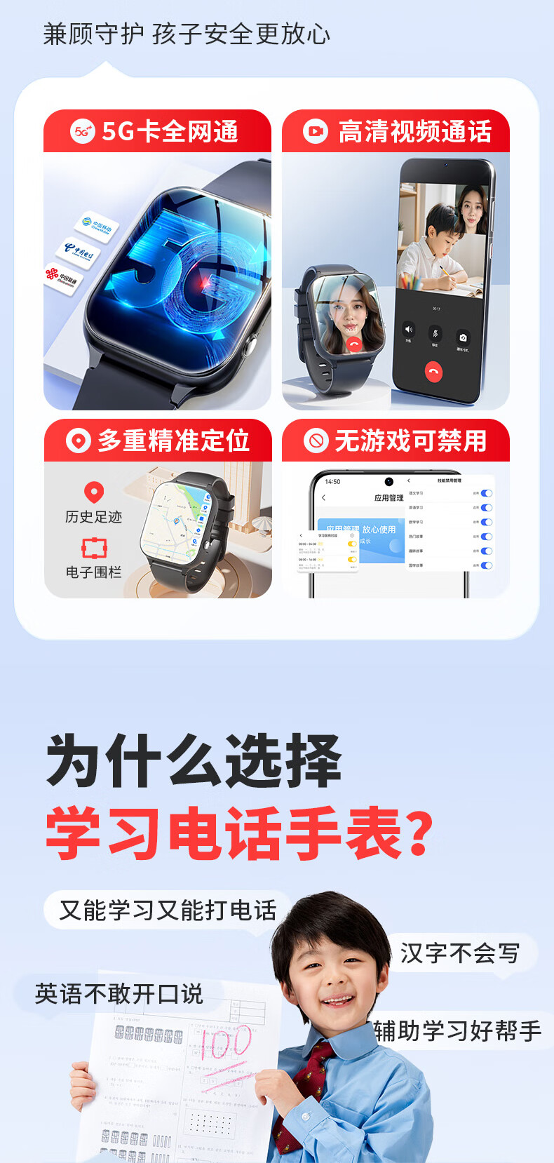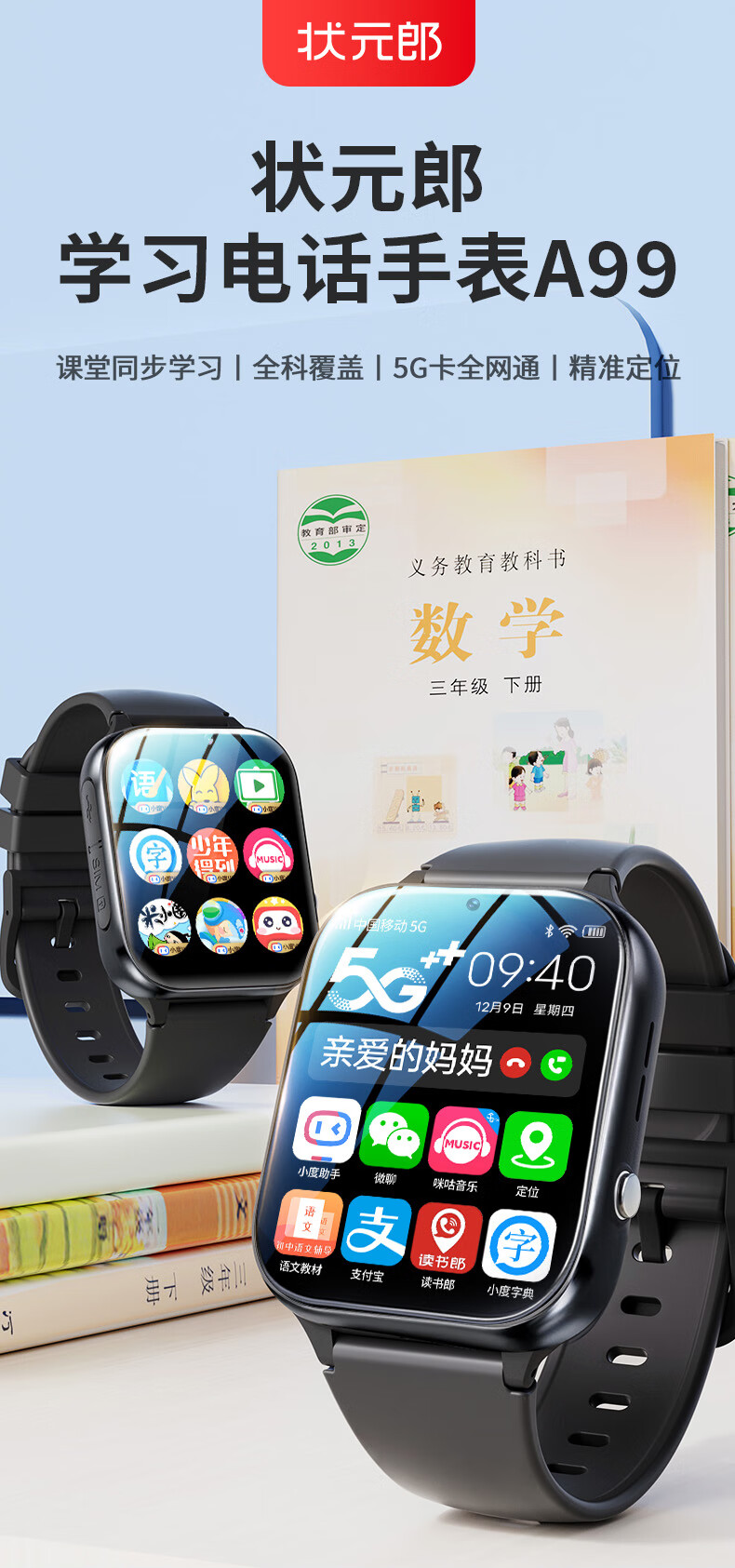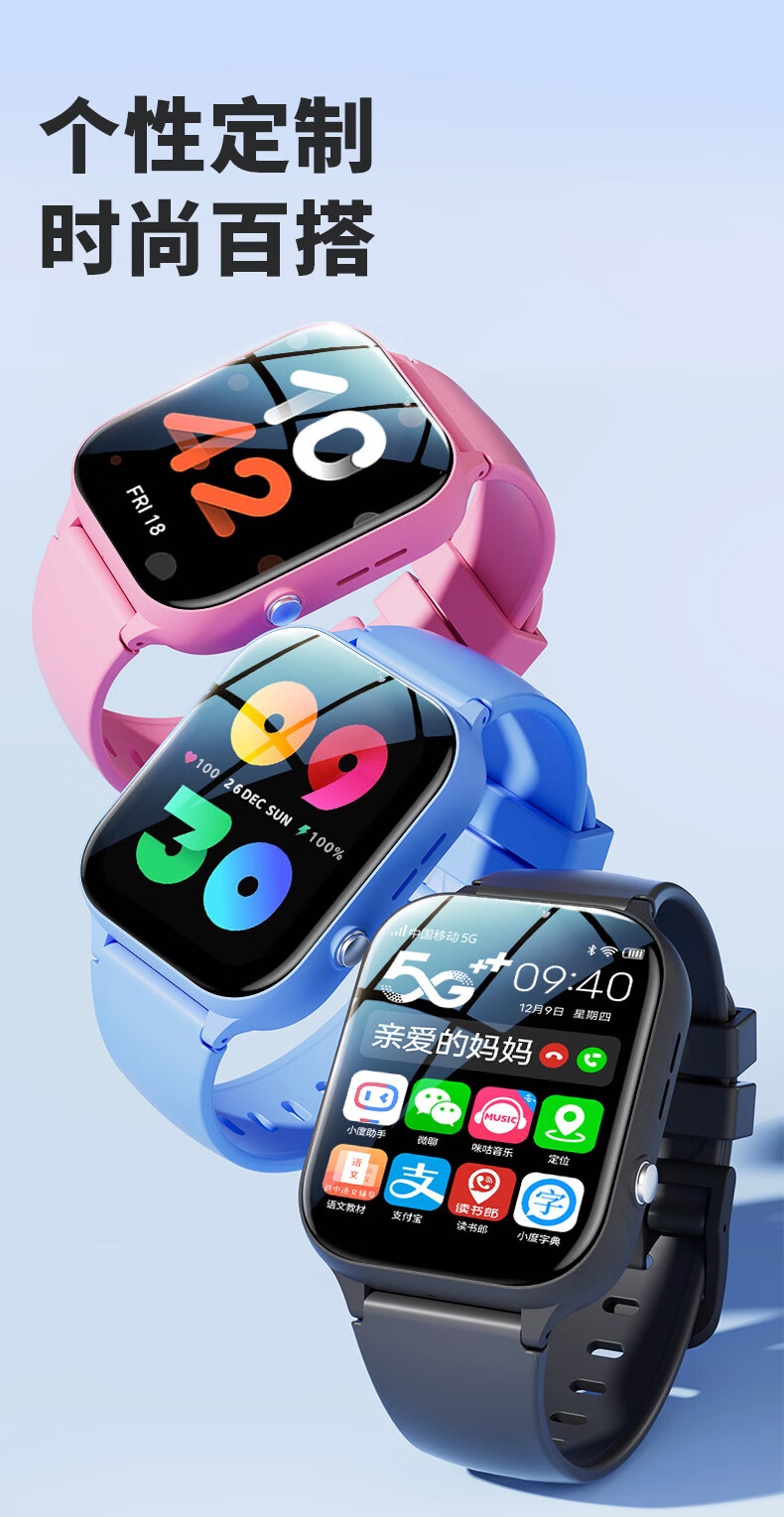状元郎华为机鸿蒙系统ios适用儿童智能学习电话手表5G全网通学生青少年初高中专用6-12岁可插卡运动手表升级版黑色【高清视频通话+多重定位防走+主流教材】