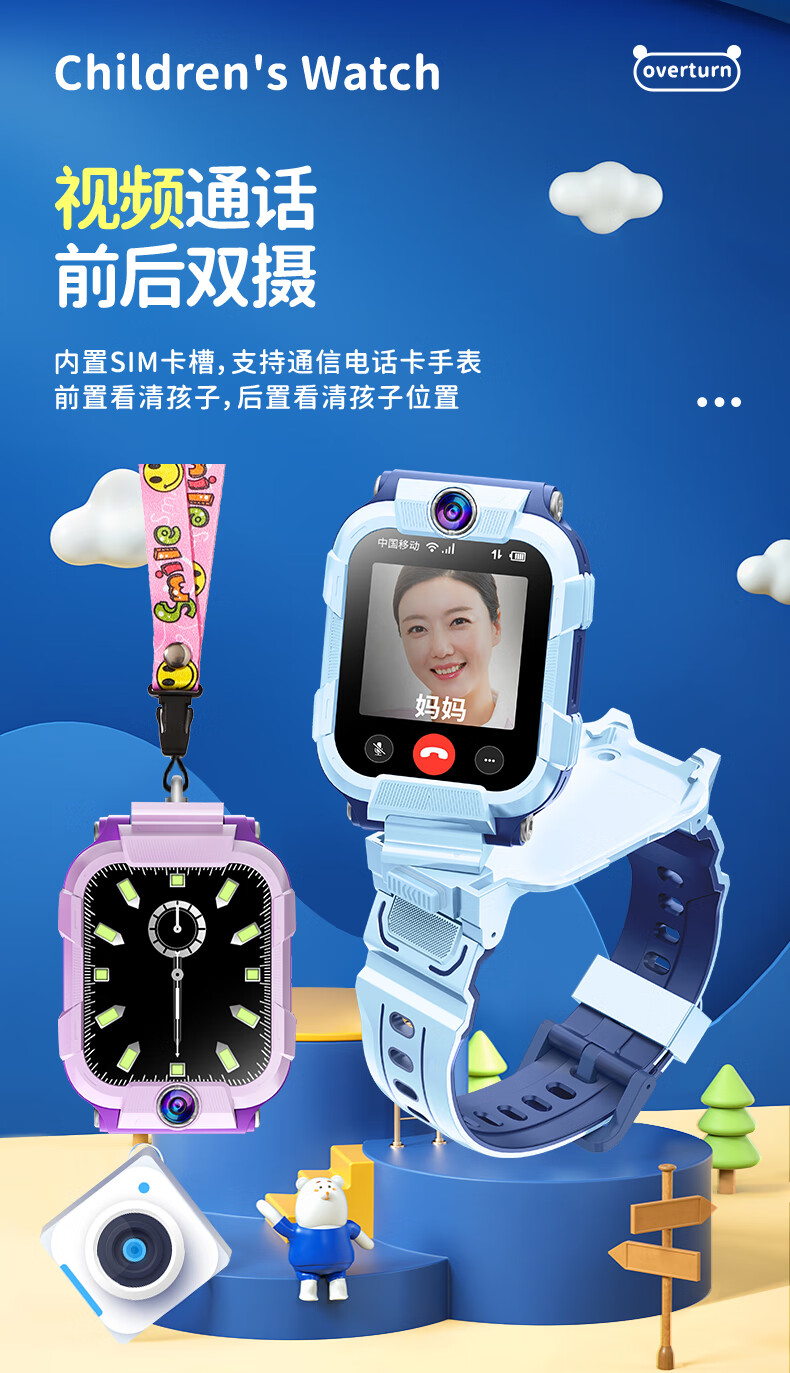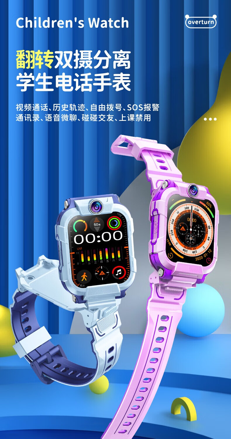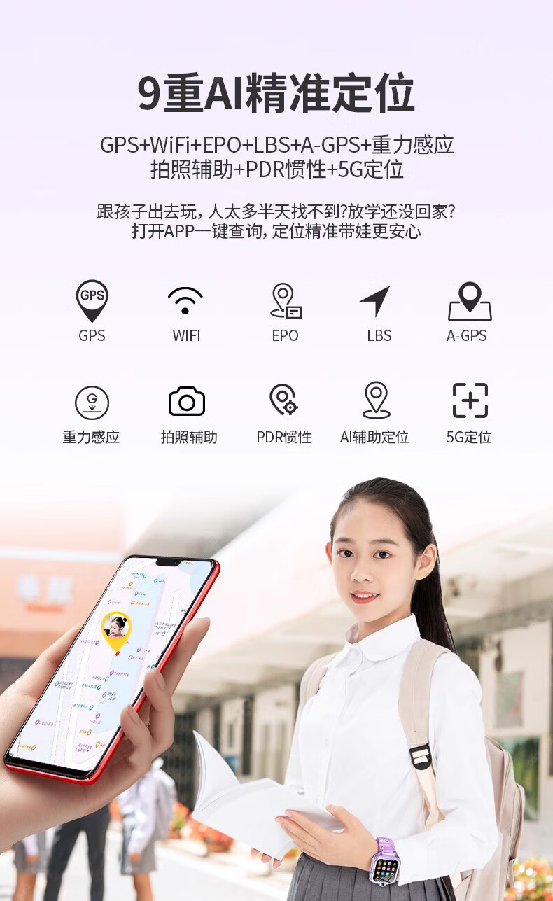YAMANLIN 适用儿童智能电话手表旋转双摄可插卡5G全网通视频通话小学生天才男女孩定位手表旗舰版紫微信QQ双支付丨定位丨上课禁用WIFI下载