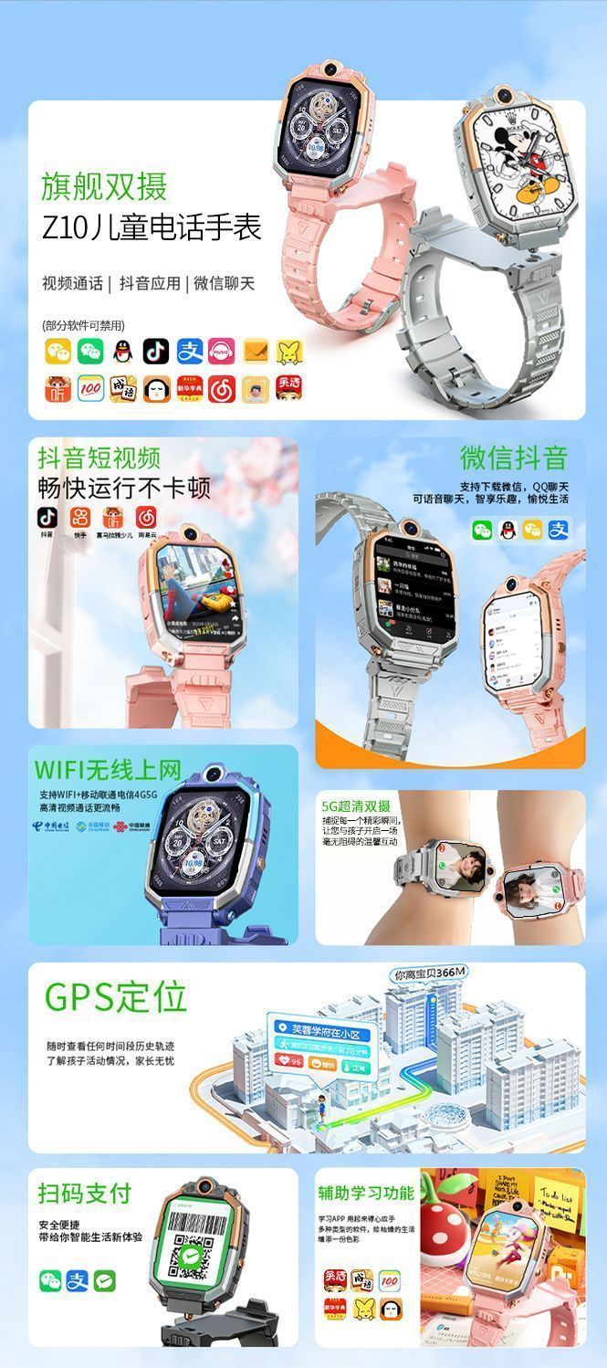科酷瑞KUCRE5G全网通儿童电话手表可插卡触摸屏中小学生通话智能定位男女孩[64G]灰-旋转双摄-海量下载-送挂'