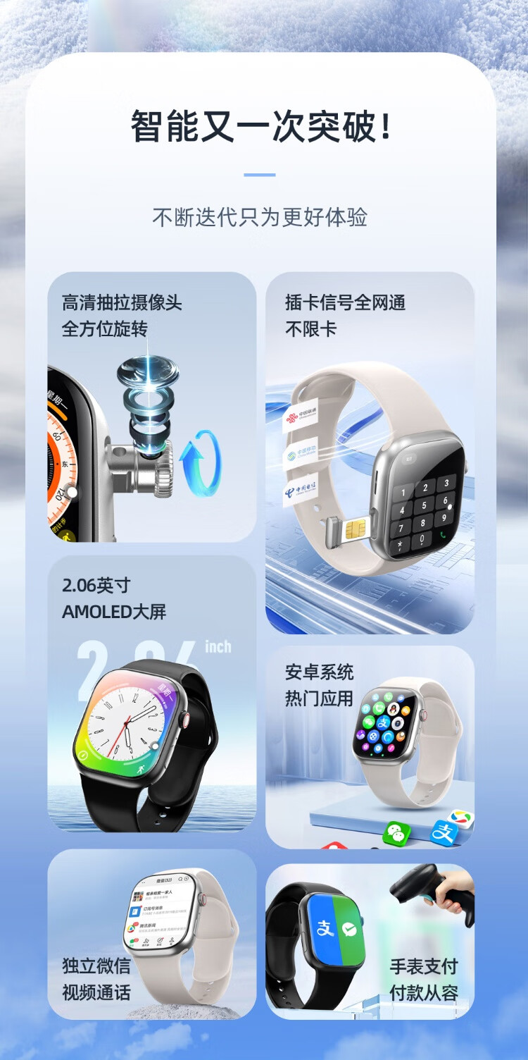 华强北手表S10pro蜂窝顶配版双系统s10蓝牙手表初中高中学生多功能手表S10pro银128蜂窝曲屏【插卡+蓝牙】双系统