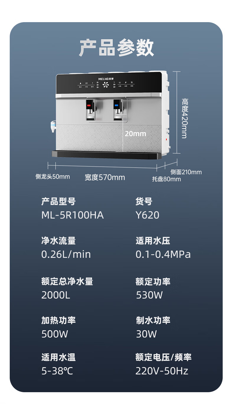 美菱(MeiLing)净水器加热直饮一体机家用RO反渗透净水器通用滤芯壁挂净饮机0阻垢剂厨房自来水过滤器自己安装银色净水加热语音播报