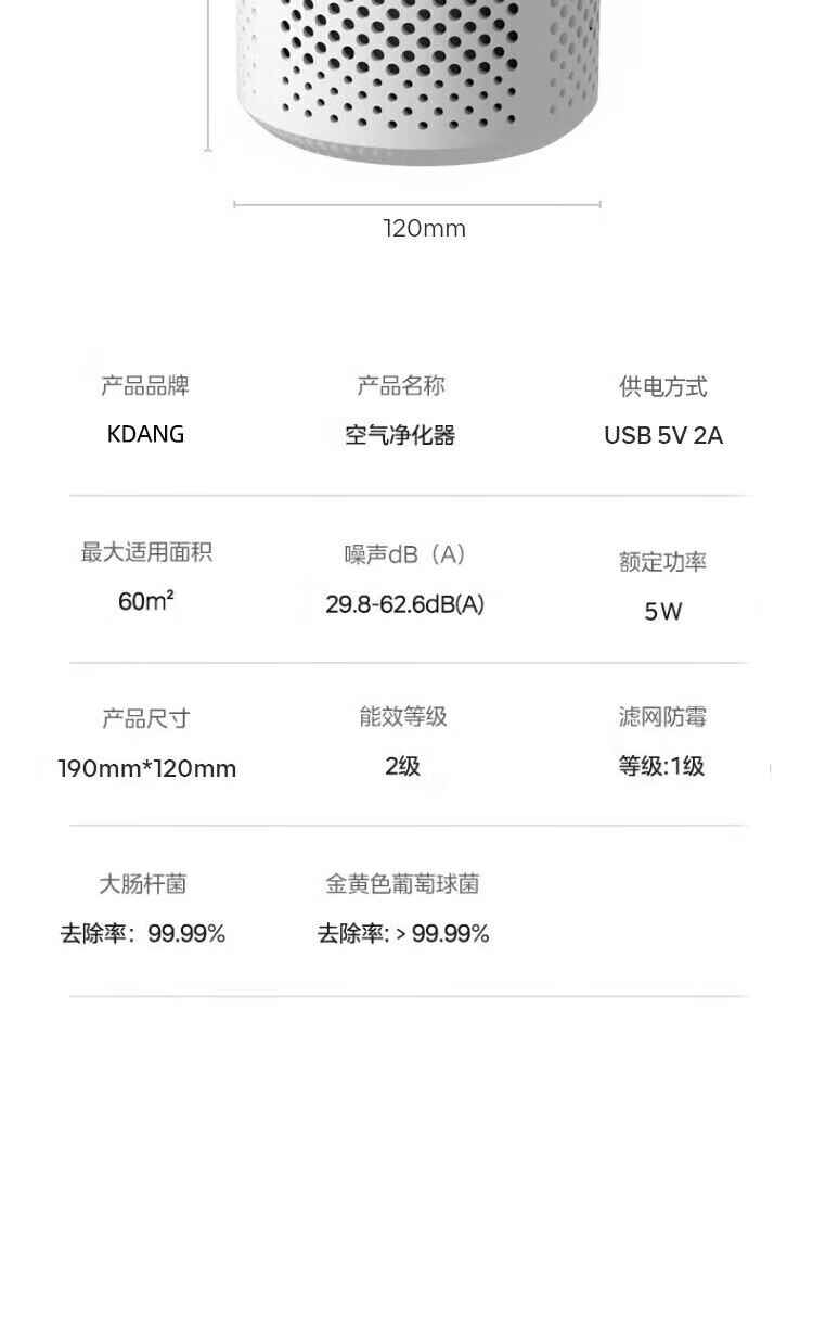 KDANG空气净化器除甲醛烟味新房急入住桌面车内家用去异味除臭菌清除剂[白色]除甲醛抑菌+负离子除二手烟