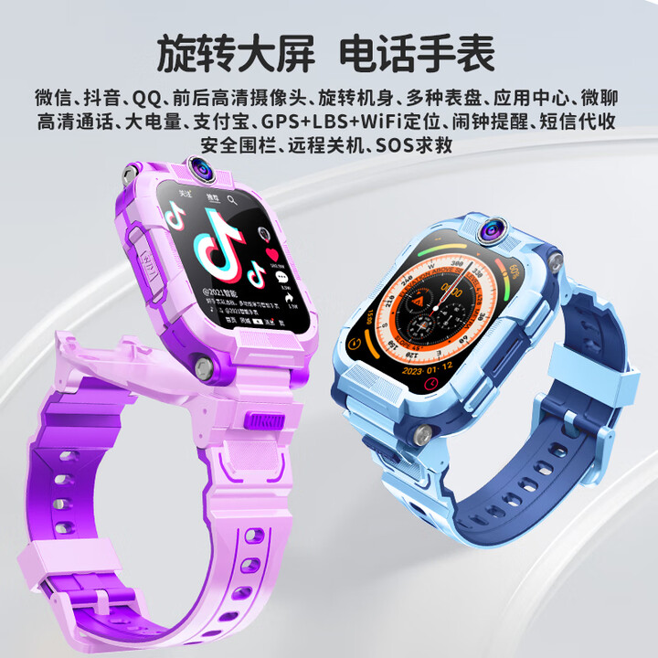 YAMANLIN 适用儿童智能电话手表旋转双摄可插卡5G全网通视频通话小学生天才男女孩定位手表旗舰版紫微信QQ双支付丨定位丨上课禁用WIFI下载